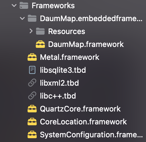 받아둔 sdk 압축 폴더 풀기 -> lib -> DaumMap.embeddedframework 폴더를 프로젝트안에 추가