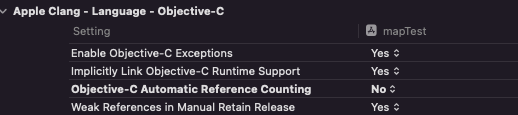 현재 Map용 SDK는 ARC를 지원하지 않기 때문에 ARC를 NO로 설정