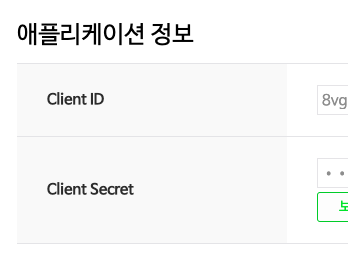 필요한 정보를 입력하여 등록하면 클라이언트 아이디와 시크릿 값을 발급받을 수 있다