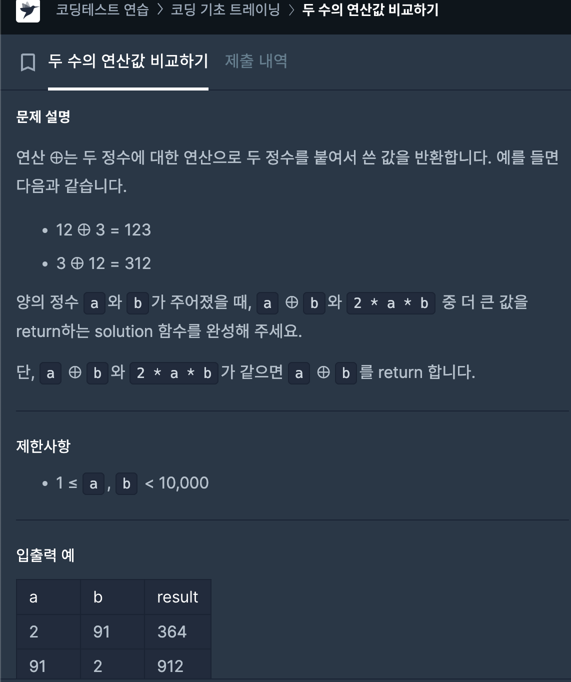 프로그래머스 코딩 기초 트레이닝의 Day3은 "연산"에 관한 문제다